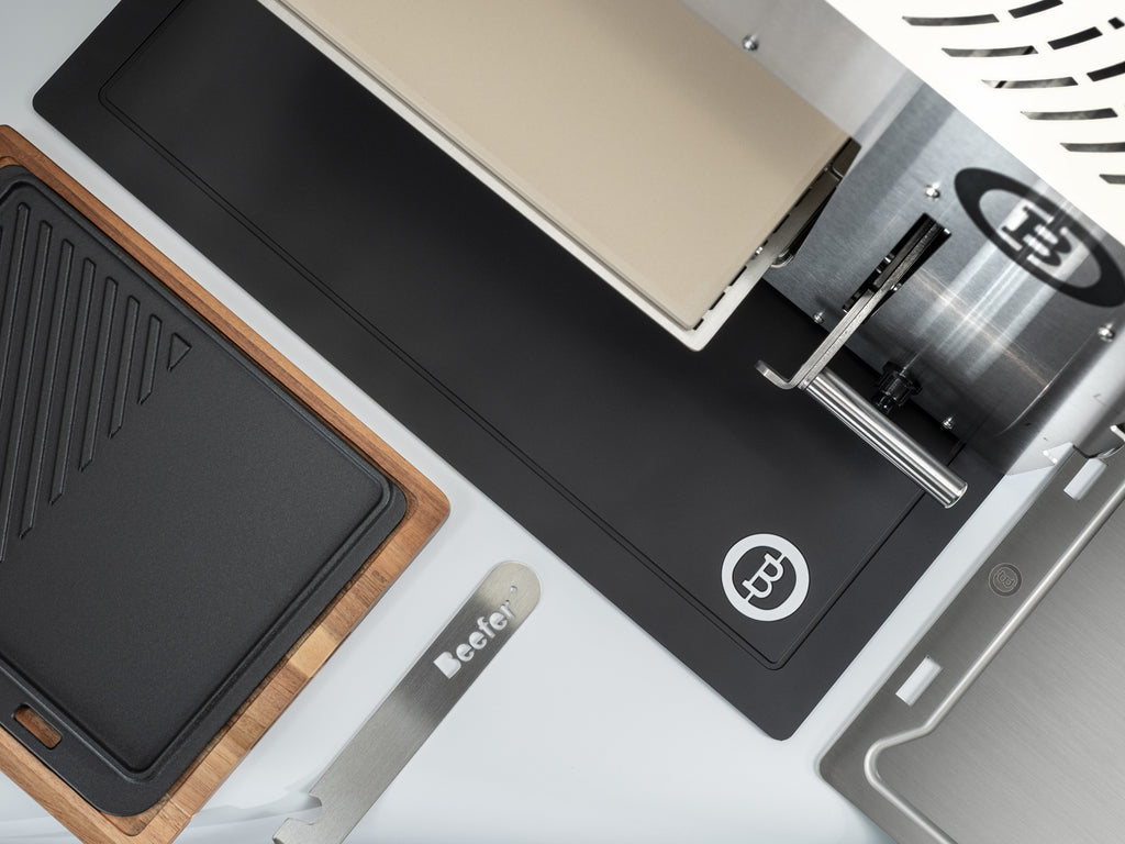 Mit der Beefer Grillmatte XL aus Silikon stehen alle Beefer XL und Beefer Twin Pro rutschfest und sauber. Sie schützt so auch den Untergrund vor allzu großer Tropferei. Du kannst sie problemlos zusammenrollen und sie findet immer wieder zurück in ihre stabile Form. Die Beefer-Grillmatte besteht aus hochwertigem Silikon und lässt sich unglaublich leicht pflegen.