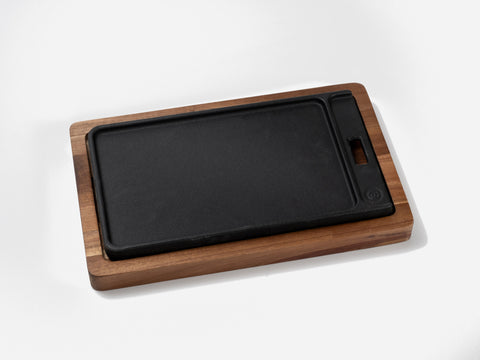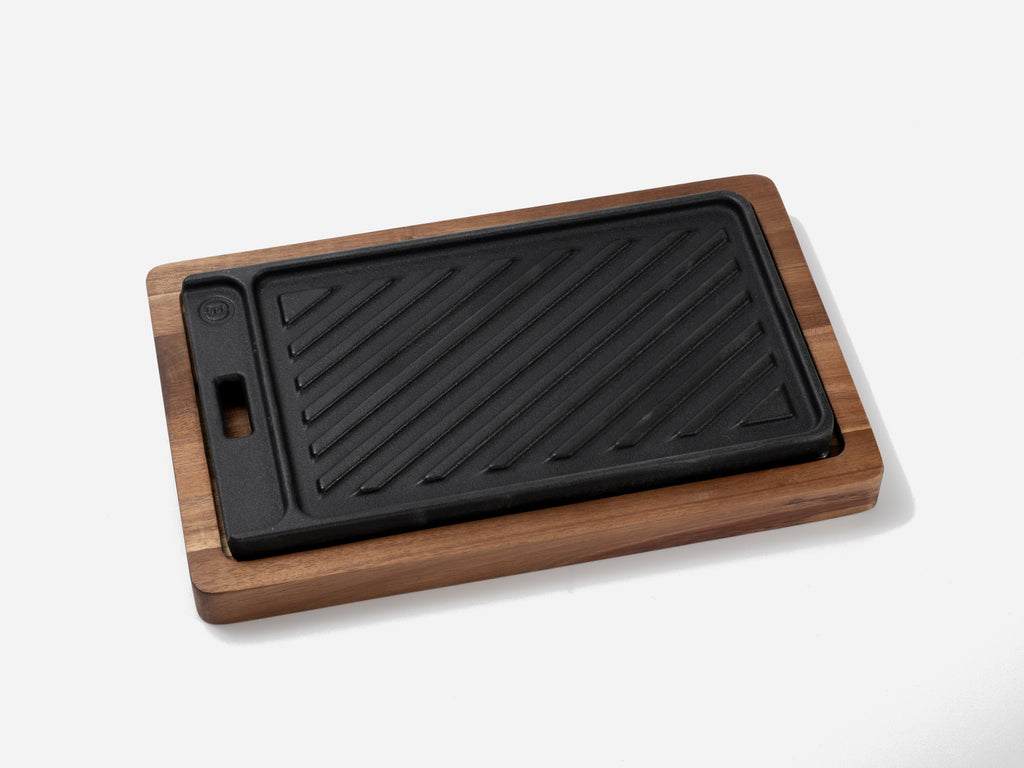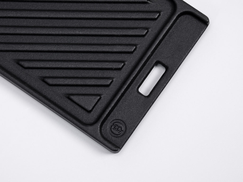Die robuste Beefer Gusseisen-Pfanne Pro aus dem System 800 kannst du von beiden Seiten nutzen. Sie verfügt über eine glatte Seite und eine Seite mit Grillmuster. Der erhöhte Rand auf beiden Seiten fängt den Fleischsaft auf, dessen Röstaromen du auch wunderbar als Saucenbasis nutzen kannst. Mit dem Beefergriff, der im Lieferumfang eines jeden Beefergerätes enthalten ist, lässt sich die Gusseisen-Pfanne Pro mühelos aus dem Beefer holen. Gereinigt wird die Gusseisen-Pfanne Pro mit warmem Wasser und milder Seife. Übrigens passt die Beefer Gusseisen Pfanne Pro perfekt in das Beefer Multifunktions-Schneidebrett Pro