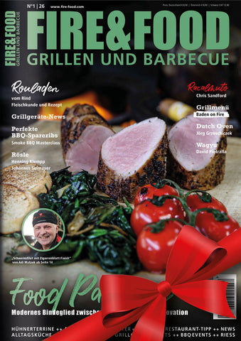Looking for the perfect gift for a barbecue enthusiast? Then give them a FIRE&FOOD gift subscription (print magazine). When ordering, please select the appropriate delivery country (Germany or EU & Switzerland) and the desired issue for the subscription start date! The FIRE&FOOD annual subscription is available for one year at the price shown above. The gift subscription ends after the fourth issue.