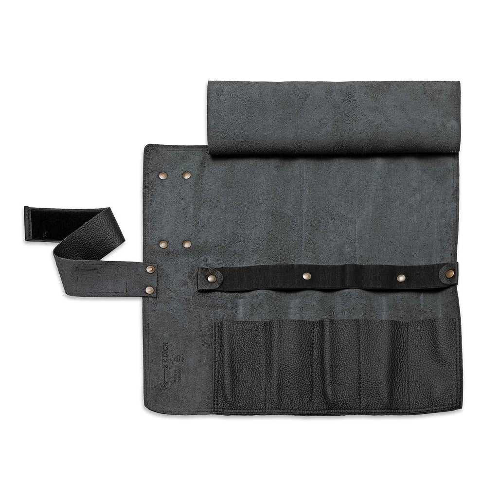 Functional and stylish equipment makes cooking and grilling an experience. Functionality, quality MADE IN GERMANY and a classy style combine skillfully with this accessory and allow every grill fan to work stylishly and safely on the grill. Not only on the grill but also in every kitchen, this leather roll bag is now a basic for all gourmets and F. DICK knife lovers. F.DICK's aim is to continually improve and expand on tried and tested products - in the spirit of craftsmanship, sustainability and the spirit of the times. The roll bag is made from 100% genuine nappa leather from Europe and then handcrafted in Germany. The leather quality corresponds to F. DICK's quality standards: it is hard-wearing, flexible, robust and is stylishly refined by the color-contrasting logo applications in antique leather quality. The attachment of the logo application is lead and nickel-free.